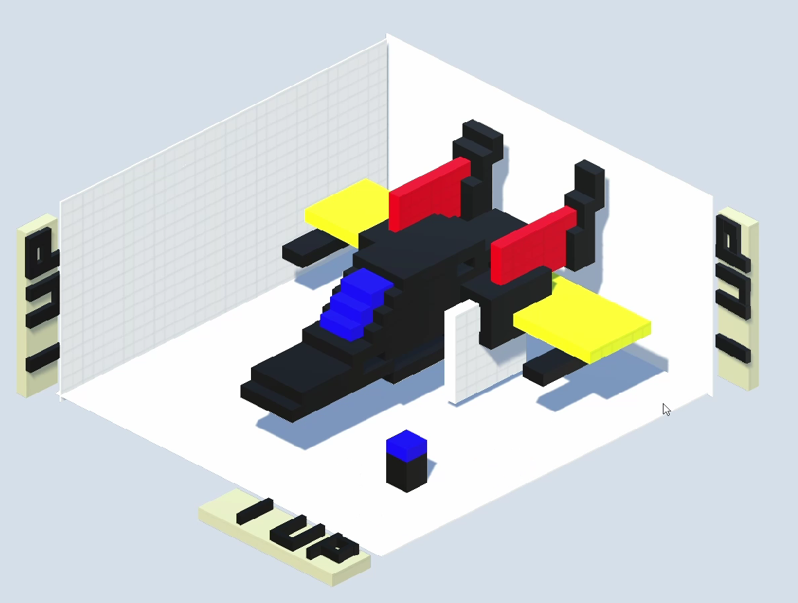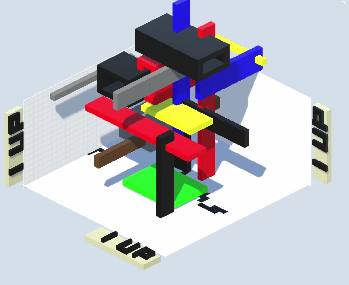 It is a construction game where the user can draw and erase freely on a grid of cells. By pressing the sidebar corresponding to either the vertical or horizontal plane, the selected cells are extruded into a series of cubes that can be assigned a color. These groups of blocks can be grabbed and manipulated in space. This allows users to intuitively create and understand the fundamentals of design and architecture in real time.