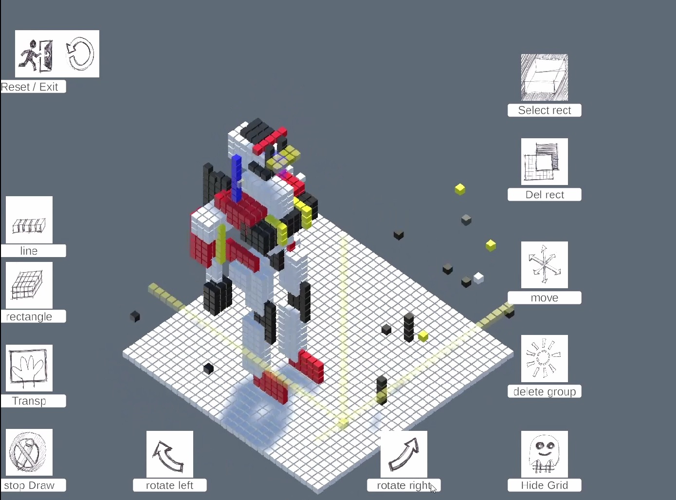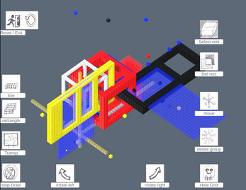 Visionauter Lab: In this virtual space, users can build floating structures made of blocks within a three-dimensional world. They can move freely up, down, and across layers, like navigating a tower of transparent sheets of paper, seeing through them, drawing across them, and transforming them. These drawings, made of blocks, can shift through space; they can be carved, shaped, and reimagined from any angle. Creation is no longer confined to a flat surface, it becomes something alive, evolving in space and perspective.